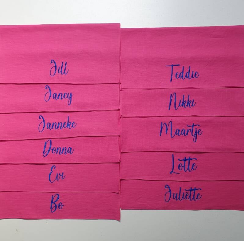 Wil je voor je verjaardag of trouwerij ook servetten met naam of een toepasselijke tekst geborduurd hebben , mail of app me en we gaan in gesprek