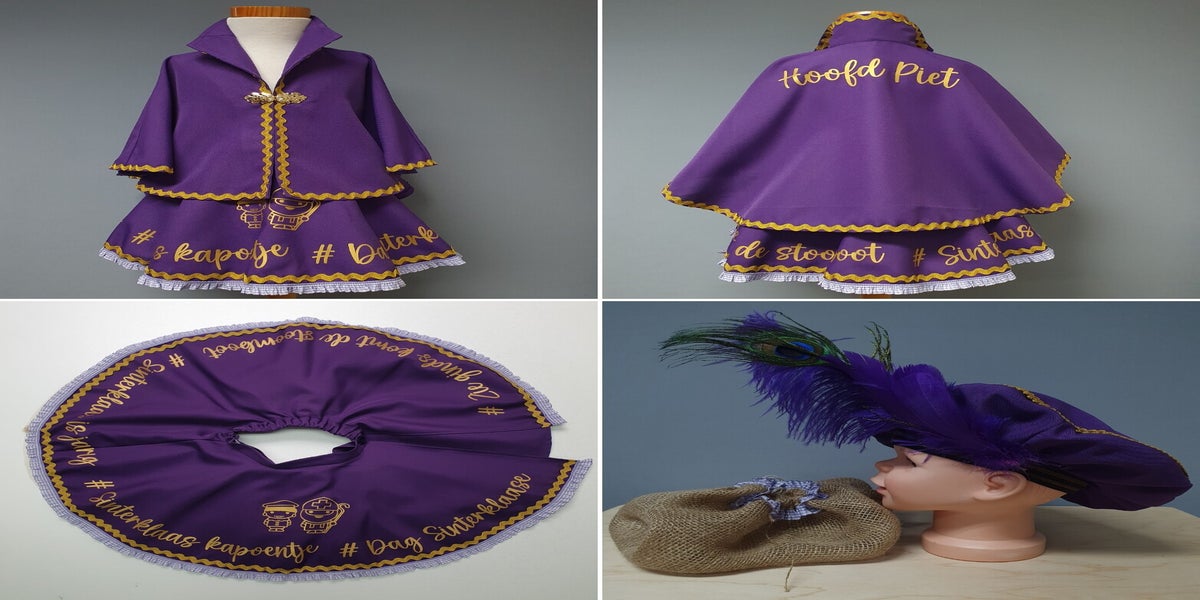 Pieten pakken bestaande uit een cape , barret en een jutten strooizakje
